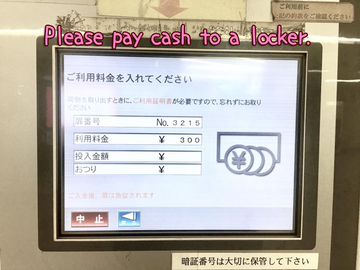 現金支払いの場合は鍵がわりに「暗証番号」が書かれた証明書が出てくるので受け取ります。